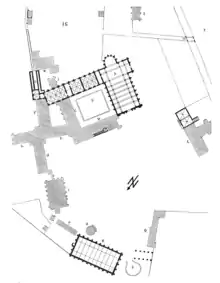 Le cloître était entouré par l'église abbatiale, la salle du chapitre (que surmontait le dortoir), le chauffoir, la cuisine et le réfectoire pour les plus grands bâtiments.