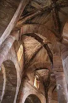 Les murs extérieurs des bas-côtés sont de briques. Contrairement à l'habituelle sobriété architecturale cistercienne, les chapiteaux des piliers de l'église étaient sculptés d'archivoltes. Les voûtes représentent une des premières expériences de croisée d'ogives en péninsule ibérique[10].