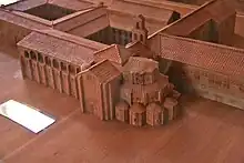 L'aménagement du monastère est quelque peu différents du classique plan cistercien, ce qui est dû à son origine bénédictine. L'église abbatiale n'est pas placée au nord, mais au sud du cloître. Cet emplacement fut également dicté par la nécessité de puisage de l'eau, plus disponible au nord, pour les communs (cuisines notamment)[7].