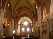 L'église est en forme de croix latine à trois nefs et à transept, orientée à l'est ; les nefs sont longues de trois travées. Selon la tradition du plan cistercien, le chœur est entouré de deux chapelles latérales de chaque côté. La particularité de cette abbatiale se trouve dans l'ornementation des piliers, qui diffère pour chacun d'entre eux[5].