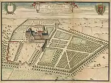 Le domaine de l'abbaye était initialement organisé en trois ensembles. La partie agricole ou pars ruralis avec granges et écuries, dévolu aux convers, était l'ensemble le plus éloigné du centre de vie des moines. Suivait la partie réservée à la vie des moines, clôturé par une enceinte fermant ce périmètre sacré vers le monde extérieur. Une unique porte, la porterie aujourd'hui disparue, permettait d'y pénétrer. Les moines ne quittaient pas cette pars urbana, mais les visiteurs pouvaient par contre y accéder. S'y trouvaient de divers bâtiments en plus de l'abbaye proprement dite, dont notamment l'infirmerie (face à l'abbaye, perpendiculaire au bâtiment des latrines mais à une certaine distance) et le bâtiment des hôtes. Y furent accueillis également les voyageurs et les exclus, suivant l'exigence de charité et de hospitalité que les Cisterciens s'imposait. Finalement, le troisième ensemble était représenté par l'abbaye proprement dite[46]. Les bâtiments y étaient conçus pour que les moines et les convers ne se côtoient pas au quotidien, et les personnes du monde extérieur accueillies à l'abbaye pouvaient uniquement accéder à l'abbatiale, qui elle-même était subdivisée.