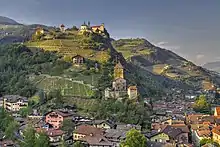 On trouve quatre églises à Säben : l'église de la Sainte-Croix, la chapelle Notre-Dame-de-Grâces, l'église abbatiale et l'église Notre-Dame[2], où sont conservés huit tableaux de Stephan Kessler, peintre baroque tyrolien, représentant les épisodes de la vie de la Vierge Marie.