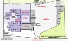 Située à l'est de la Dives, l'abbaye est close de murs. Dans l'angle nord-est, une petite église et une chapelle sont réservées au culte des paroissiens du bourg de Saint-Pierre-sur-Dives.