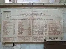 Dans le déambulatoire : deux toiles naïves XVIIe – XVIIIe siècle (le Miracle de saint Wambert et Procession de reliques devant l'abbatiale).