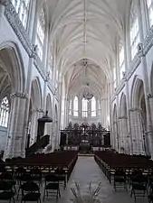 À l’intérieur, le style est plutôt classique, dans les boiseries, les grilles et la décoration en marbre du XVIIe siècle sous l’influence de l’abbé Charles d’Aligre.