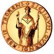 Sceau de l'abbaye en 1271 : saint Martin en costume épiscopal avec mitre et chasuble, bénissant de la main droite et tenant de la main gauche un livre de la Règle.
