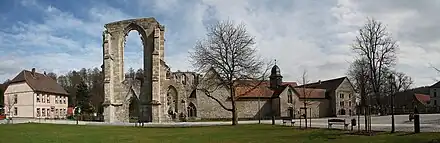 En 1629, un essai de repeuplement catholique est effectué par les moines de Kaisheim, mais la guerre de Trente Ans fait alors rage. Les moines fuient devant l'avancée des troupes suédoises de Gustave II. En 1668, à son tour, le monastère protestant est fermé, et l'ancienne infirmerie est détruite. L'église abbatiale commence à être utilisée comme carrière de pierres. Plusieurs fermes sont construites à l'intérieur même de l'édifice[5].