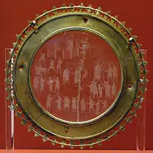 L’intaille de Lothaire est un remarquable bijou lotharingien datant de la fin du IXe siècle sur lequel sont gravées huit scènes tirées de l’histoire de Suzanne (dans le livre de Daniel). De grande valeur ce petit disque de cristal (11 cm de diamètre) fut à l’origine de la mauvaise action du comte Eilbert de Florennes, qui en marque de repentir le laissa à l’abbaye de Waulsort qu’il avait fondée.