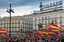 La manifestation républicaine la plus importante se déroule à la Puerta del Sol à Madrid, réunissant entre 10 000 (selon les chiffres officiels) et 20 000 personnes (selon certains médias)[33]. Les partisans de la monarchie appellent également à manifester le à 20 heures[34], en réponse à d'autres manifestations républicaines prévues. À Séville en particulier, deux manifestations simultanées ont lieu sur la Plaza Nueva, les monarchistes réunissant dans la capitale andalouse quelque 200 personnes, un nombre inférieur à celui des républicains[35]. Au total, plus de soixante rassemblements républicains ont lieu dans toute l'Espagne et dans certaines capitales étrangères, comme Paris et Bruxelles.
