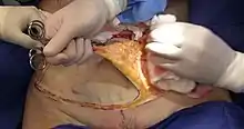 L'abdominoplastie est la chirurgie de l'abdomen à visée esthétique ou fonctionnelle (cure d'éventration)[1]. Cette opération chirurgicale permet de diminuer le relâchement de tissu de l'abdomen au patient, redrapant sa peau, et rendant son abdomen plus serré et plus plat[2]. Les régimes alimentaires stricts sont les meilleures stratégies pour assurer un début du processus mais la chirurgie est parfois incontournable.