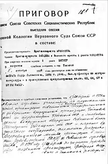 Son procès se tient le 4 octobre 1938 et se termine par une condamnation à mort et la confiscation de tous ses biens. Des documents d'archives montrent que son exécution a eu lieu le 4 octobre 1938, la veille de sa condamnation officielle, le 5 octobre 1938[36].