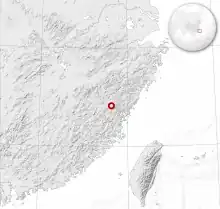 L'espèce est endémique des monts Baishanzu (百山祖 en chinois), au sud-ouest de la province du Zhejiang en République populaire de Chine.