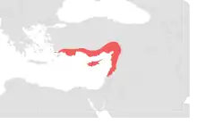 Cette espèce se rencontre en Turquie, en Syrie, au Liban et à Chypre[2].