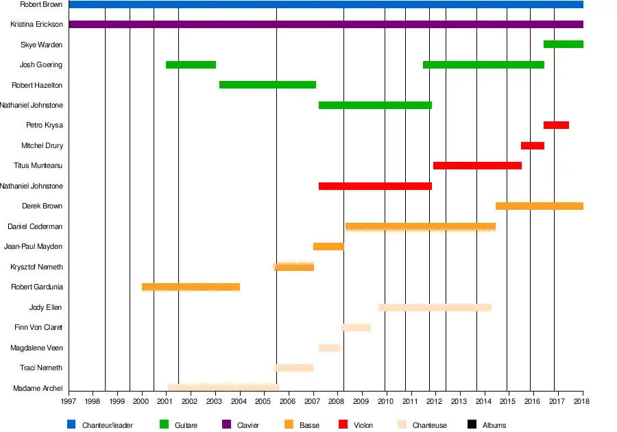 - Robert Brown (en) : chant, darbuka, accordéon, harmonica, bouzouki, bağlama, ukulélé