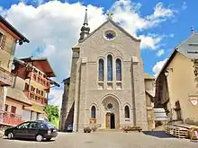 - L'église Notre-Dame-d'Abondance a été construite vers 1275. Elle est la seule église de Savoie à posséder un déambulatoire et des chapelles absidiales[36].