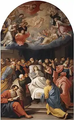 Abraham Matthijs est connu pour ses peintures religieuses, ses portraits et ses scènes marines. Seules quelques-unes de ses œuvres sont conservées. L'une d'entre elles représente La Mort de Marie (1633, Cathédrale Notre-Dame (Anvers) ). Cette œuvre montre que l'artiste est encore imprégné du style de la génération de peintres précédant les innovations baroques introduites à Anvers par Rubens. La palette de Matthijs dans cette œuvre est sourde et déséquilibrée. Les figures de la composition ne sont pas non plus bien agencées. Il peint également une Assomption de Marie pour un monastère local.