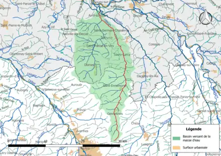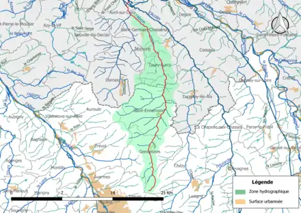 | Sources : SANDRE:« Fiche cours d'eau (K18-0320) », Géoportail | |