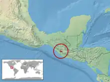 Cette espèce se rencontre au Chiapas au Mexique et au Guatemala de 1 950 à 2 630 m d'altitude sur le volcan Tacaná[1].