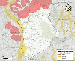 Le retrait-gonflement des sols argileux est susceptible d'engendrer des dommages importants aux bâtiments en cas d’alternance de périodes de sécheresse et de pluie. 12,8 % de la superficie communale est en aléa moyen ou fort (67,4 % au niveau départemental et 48,5 % au niveau national). Sur les 384 bâtiments dénombrés sur la commune en 2019, 32 sont en aléa moyen ou fort, soit 8 %, à comparer aux 81 % au niveau départemental et 54 % au niveau national. Une cartographie de l'exposition du territoire national au retrait gonflement des sols argileux est disponible sur le site du BRGM[22],[Carte 3].