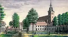 Le monastère bénédictin Saint-Michel, fondé avant 956, est à l'origine hors des murs de la ville, au pied du Kalkberg (de). Après la démolition du château souverain lors de la guerre de Succession de Lunebourg, il est transféré à la ville en 1371. Au cours de la Réforme, les ducs de Celle s'efforcent d'abolir la convention monastique et de confisquer les biens du monastère. Cependant, en raison de la résistance du monastère et de la ville de Lunebourg, cela échoue et le couvent reste, maintenant en tant que monastère masculin protestant. En 1655, les ducs tentent ensuite d'abolir le monastère. Malgré une résistance massive de la convention et des chevalerie de Lunebourg, le duc Christian-Louis réussit finalement à s'affirmer et à s'entendre avec les moines et les chevaliers. Les anciens résidents du monastère sont payés et les actifs du monastère doivent être utilisés pour créer et gérer une école pour la noblesse de Lunebourg.