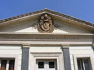 Le siège de l'Académie est la Casina[rl 1] (ou Villa Pia), un trésor de l'architecture du XVIe siècle, entourée par les jardins du Vatican, construite en 1561 pour servir de résidence d'été au pape Pie IV.