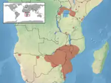 Cette espèce se rencontre en Afrique du Sud, en Namibie, au Botswana, au Zimbabwe, au Mozambique, au Malawi, en Zambie, en Angola, au Congo-Kinshasa, en Tanzanie, au Kenya, au Ouganda, au Rwanda, au Soudan du Sud, en Éthiopie et en Somalie[1].