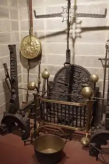 Musée de la Gourmandise, Hermalle-sous-Huy, Belgique - Accessoires de foyer, XVIe siècle et XVIIe siècle, et bassinoire (fin XVIIe siècle, début XVIIIe siècle