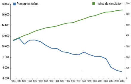 Sur une longue période, entre 1975 et 2001, la baisse moyenne annuelle du nombre de personnes tuées s’établissait à 2,3 %.