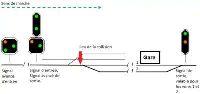 La collision s'est produite, car le train 12976 Payerne - Lausanne est parti de Granges - Marnand alors que le signal qui s'adressait à lui présentait l'image "arrêt" (soit un feu rouge)[11].