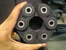 Le joint de Cardan, ou simplement « cardan », ou encore « joint universel » (terminologie plus courante dans la littérature technique anglo-saxonne), permet de transmettre un mouvement de rotation d'un arbre à un autre lorsqu'ils forment entre eux un angle (inférieur à un angle droit). Dans ce dispositif, les deux arbres sont dotés à leur extrémité d'une fourche ; les deux fourches sont perpendiculaires, et connectées par un croisillon, rotulé aux extrémités de chacune des fourches[7].