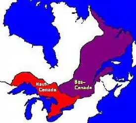 - Le Haut-Canada est sous l'administration d'un lieutenant-gouverneur nommé par le gouverneur général alors que le Bas-Canada est sous l'administration directe d'un gouverneur général ;