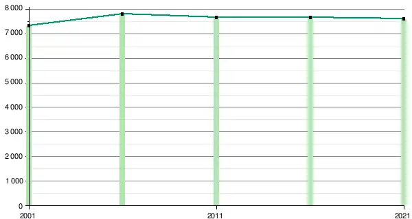 En 2008, la population de 7 978 habitants est composée de 3 970 hommes et 4 008 femmes.
