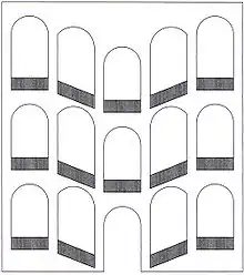 La façade en forme d'ailes de faucon, d'où son appellation, est caractérisée par un escalier à jour central — pozzo centrale – ou à double jour (doppio pozzo) et par un nombre d'arcs dont l'aspect varie en fonction des dimensions de l'édifice. À l'intérieur, la cage est soutenue par des pilastres raccordés à des arceaux rampants et sur les paliers à des voûtes sphériques et des voûtes d'arête.