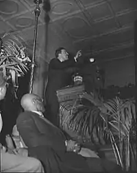Adam Clayton Powell Jr., né le à New Haven (Connecticut) et mort le à Miami (Floride), est un pasteur baptiste et un homme politique américain, qui est le premier Afro-Américain à devenir un membre influent du Congrès. Il est élu à la Chambre des représentants en 1945, comme représentant du quartier de Harlem, à New York. Il prend la tête de la Committee on Education and Labor (commission de l'éducation et du travail) de la chambre basse en 1961. Son mandat comme président de la commission est marqué par l'adoption de lois sociales importantes. Sa carrière s'achève par un scandale de corruption.
