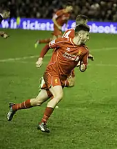 Adam Lallana avec le Liverpool FC en 2015. | ||