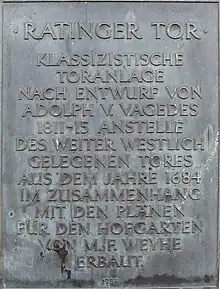 - 1811-1815 : Porte de Ratingen (de), la dernière porte de la ville construite à Düsseldorf dans le style d'un temple grec avec des colonnes doriques. Elle est également considérée comme un modèle pour la Neue Wache de Schinkel et pour les Propylées de Munich.