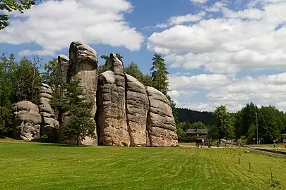 Par la route, Adršpach se trouve à 18 km de Trutnov, à 31 km de Náchod, à 68 km de Hradec Králové et à 170 km de Prague[8].