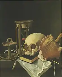 Les premiers travaux de l'artiste comprennent également trois natures mortes avec vanité bien connues, créées entre 1686 et 1688. Le thème de l'éphémère, typique des natures mortes baroques néerlandaises, est abordé par Adriaen Coorte dans ces tableaux en ajoutant des objets symboliques. Par exemple, dans la nature morte Vanité datée de 1686 (collection particulière), figurent un crâne et un sablier ; une lampe à huile indique le passage du temps. Dans la nature morte Vanité de 1687, Adriaen Coorte pointe la finitude de la vie à côté d'un crâne et d'une bougie. Nature morte à la vanité dans une niche de 1688 montre à nouveau un crâne et une lampe à huile ; le peintre a également ajouté une montre de gousset comme symbole du passage du temps. D'autres accessoires comme une pipe ou le violon d'un maître de danse représentent la volatilité de la fumée ou la musique qui s'estompe rapidement, et sont aussi des références au temps qui passe[18].