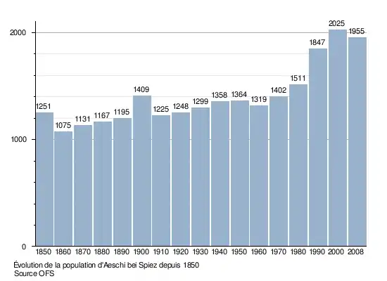 Le graphique suivant résume l'évolution de la population d'Aeschi bei Spiez entre 1850 et 2008[5] :