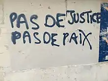- Clara Degiovanni, « « Pas de justice, pas de paix » : décryptage d’un slogan », Philosophie Magazine, (lire en ligne, consulté le ).