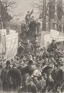 En , Kenealy lance un mouvement politique, la « Magna Charta Association », avec un vaste programme qui reprend certaines des revendications des chartistes des années 1830 et 1840[15]. En , Kenealy se présente à une élection partielle, pour la circonscription de Stoke-upon-Trent, comme « candidat du peuple », et l'emporte à une écrasante majorité[106]. Cependant, il ne parvient pas à convaincre la Chambre des communes d'établir une commission royale d'enquête sur le procès Tichborne, sa proposition n'obtient qu'une voix, la sienne, et le soutien de deux scrutateurs sans droit de vote et 433 voix contre[83],[107]. Par la suite, au sein du parlement, Kenealy devient une figure souvent tournée en dérision, et la plupart de ses campagnes se mènent ailleurs[108]. Pendant les années où le « mouvement Tichborne » est populaire, un marché important de souvenirs s'est créé, sous forme de médaillons, de figurines en porcelaine, de broderies et autres bibelots[109]. Cependant, dès 1880, l'intérêt pour l'affaire diminue et, lors des élections générales de cette année là, Kenealy est lourdement défait. Il meurt d'une insuffisance cardiaque quelques jours après l'élection[108]. La « Magna Charta Association » poursuit son action politique pendant encore quelques années, mais son audience diminue peu à peu. The Englishman, le journal fondé par Kenealy pendant le procès, cesse de paraître en , et il n'existe aucune trace d'activités de l'association après cette date[110].
