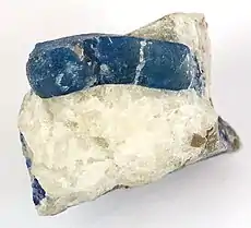 Afghanite sur du marbre, Sar-e-Sang, Badakhchan, Afghanistan. Taille : 3,4 x 3,1 x 2,6 cm. | |