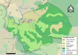 L'occupation des sols de la commune, telle qu'elle ressort de la base de données européenne d’occupation biophysique des sols Corine Land Cover (CLC), est marquée par l'importance des forêts et milieux semi-naturels (51,9 % en 2018), en augmentation par rapport à 1990 (50,2 %). La répartition détaillée en 2018 est la suivante : forêts (51,9 %), prairies (41,9 %), zones agricoles hétérogènes (3,6 %), zones urbanisées (2,6 %)[23].