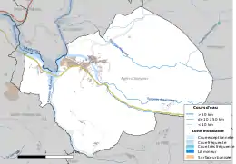 Réseaux hydrographique et routier d'Agen-d'Aveyron.