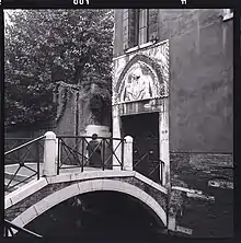 Palais Agnusdio ou des Quatre Évangélistes, à Santa Croce, Venise, detaille de la façade. Photo par Paolo Monti, 1970.