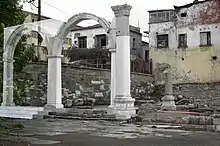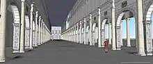 La porte occidentale dite "porte de Faustine" marque le débouché d'une rue traversant la place d'Est en Ouest. C'était une porte double dont la moitié droite a été reconstruite en 2004.
