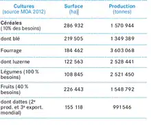 - 1,3 million de tonnes de dattier (2e producteur mondial après l'Égypte) ;