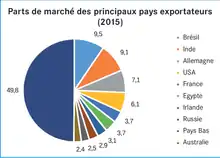 L’Arabie saoudite souhaiterait développer ses exportations de dattes vers l’Europe et la France notamment. Malgré un triplement de ses exportations en 10 ans, sa part de marché n’est cependant que de 4 %, au 5e rang, loin derrière le Brésil, l’Inde et les États-Unis, à égalité avec l’Allemagne, l’Irlande et l’Égypte. À noter la présence des émirats arabes unis à la 4e place, qui correspond pour l’essentiel à des réexportations en provenance des mêmes pays d’origine précités. À noter la faible part de marché des céréales françaises dû aux conditions défavorables de la campagne 2014/2015 et pour le blé, à un taux de protéine, 11 %, ne répondant pas aux conditions des appels d’offres.