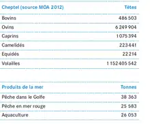 Les principales productions animales sont les vaches laitières, la volaille (poulet de chair et œufs), les chameaux, les petits ruminants, l’aquaculture.