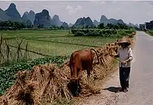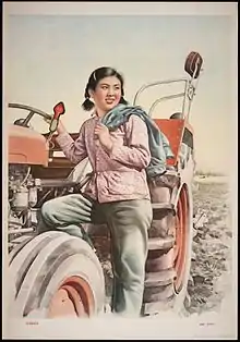 - Productivité : dans les années 1960, 80 % des Chinois travaillaient pour le secteur primaire[5]. Aujourd'hui, l'agriculture occupe encore une part importante de la population active. Un grand nombre d'exploitations familiales sont minuscules. Les fermes d'état existent toujours et participent à la politique de colonisation Han dans le Xinjiang ou en Mongolie-Intérieure[réf. nécessaire].